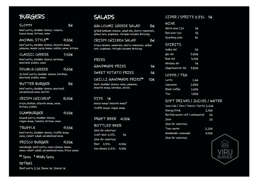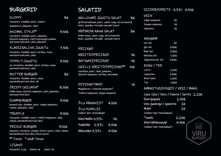 Viru Burger x Hobujaama Menu
